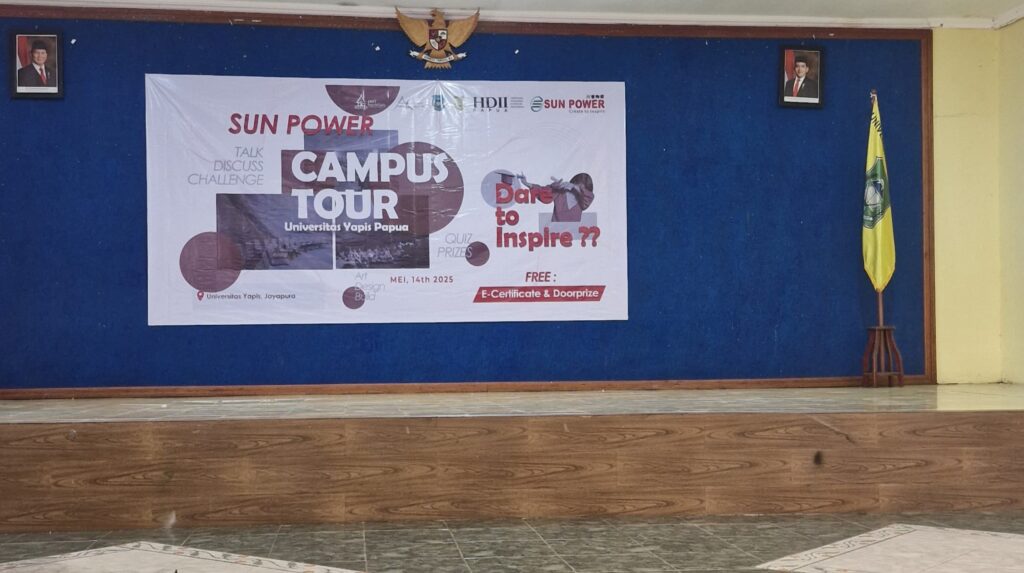 Jayapura, 14 Mei 2025 – Fakultas Teknik Universitas Yapis Papua menyelenggarakan kuliah tamu dengan tema “Sun Power Campus Tour” pada Rabu (14/5) di Auditorium Lt. 5 UNIYAP. Acara ini menghadirkan Vidya Damayanti, S.Sn., Selaku Marketing Manager PT. SUn Power Ceramics sebagai pembicara utama.